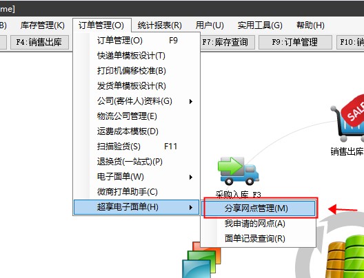 登录银狐之后,点击菜单【订单管理】--》【超享电子面单】--》【分享网点管理】