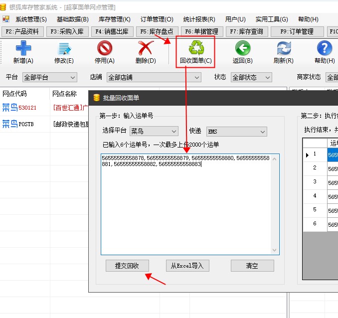 也可以点【从Excel导入】按钮导入运单号,注意一次回收的单号不能超过2000单。
