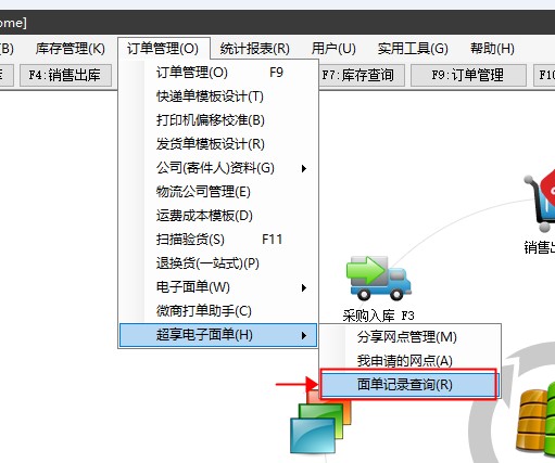 点击菜单:【订单管理】--》【超享电子面单】--》【面单记录查询】