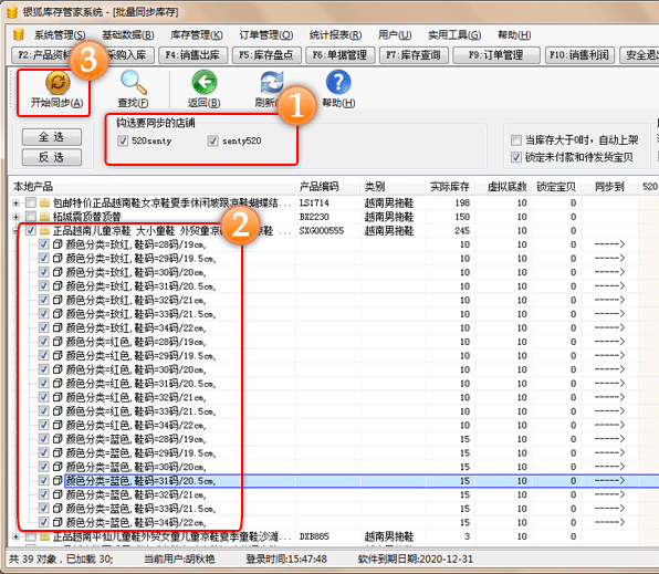 2)选择要同步产品和店铺,点击工具栏上的【开始同步】按钮,如下图所示: