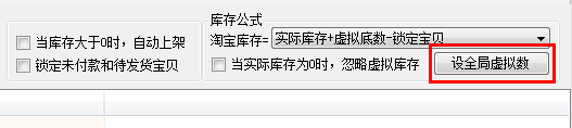 4)、设置虚拟底数,虚拟底数主要是想让淘宝库存和本地实际库存不一样,具体设置方法: